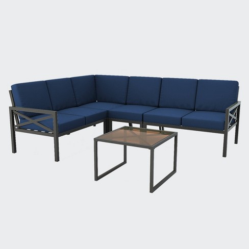 We've thought of looks and comfort with the seaport navy sectional. Great sectional decor is the name of the game and can switch up any outdoor setting. Blakely outdoor sectional with cushion (s) and sunbrella navy aluminum frame. Outdoor 3 piece patio conversation lounge sofa set with cushions`. Provide ample seating with outdoor sectional sofas and chairs.